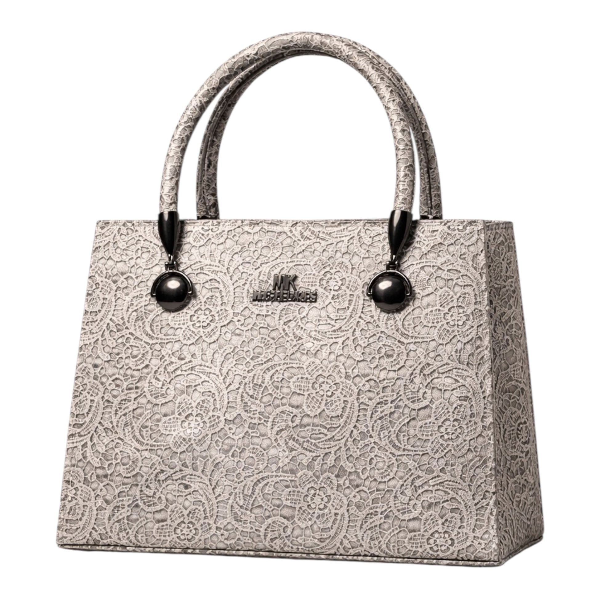 An elegant lace-textured tote with structured shape and dual handles perfect for refined everyday styling.